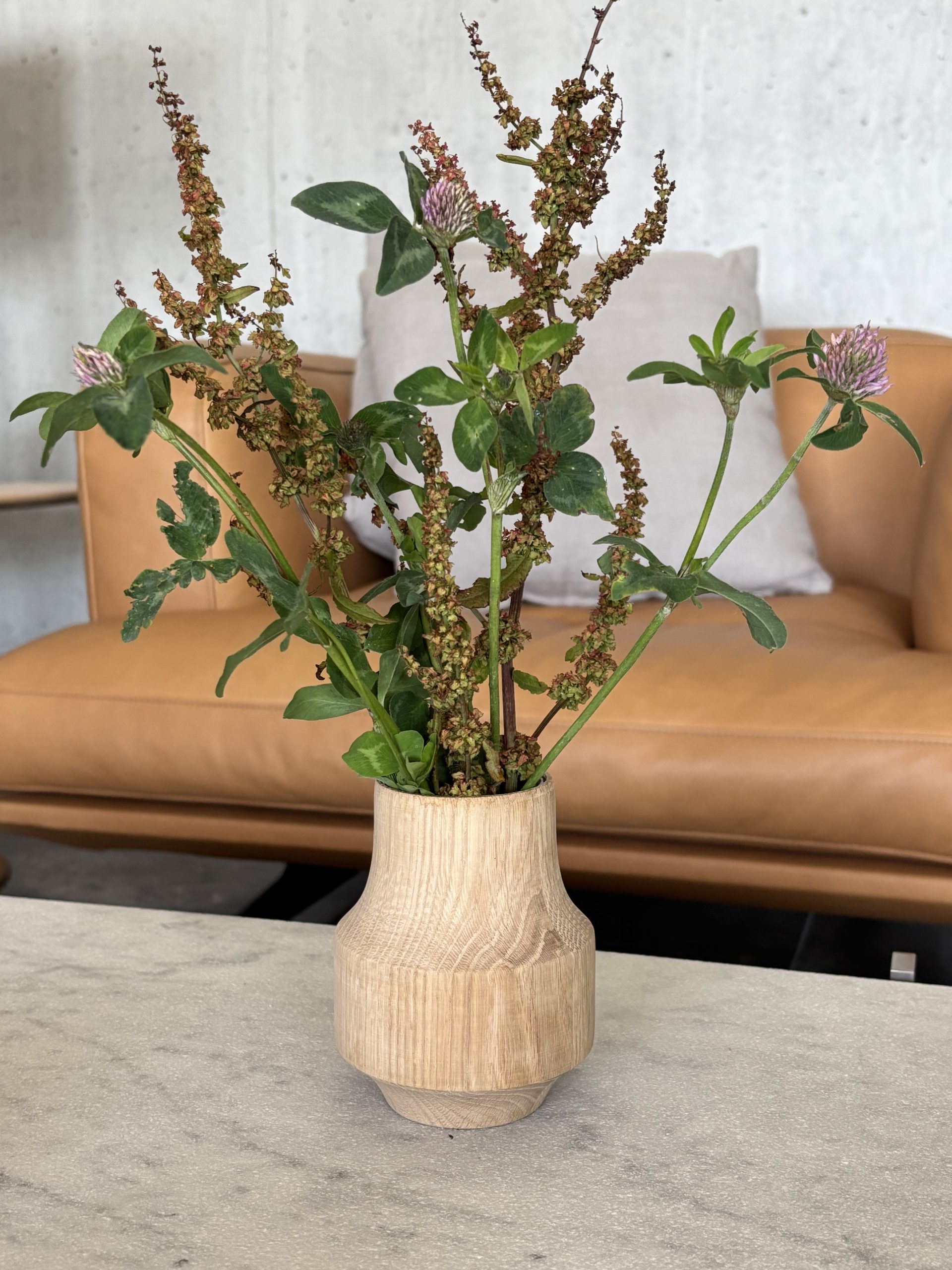 Locally crafted in Scandinavia, the oak version celebrates simplicity and craftsmanship in its purest form. Whether holding a few garden stems or standing quietly on its own, the Dicte Vase in oak brings a sense of calm refinement to any interior.