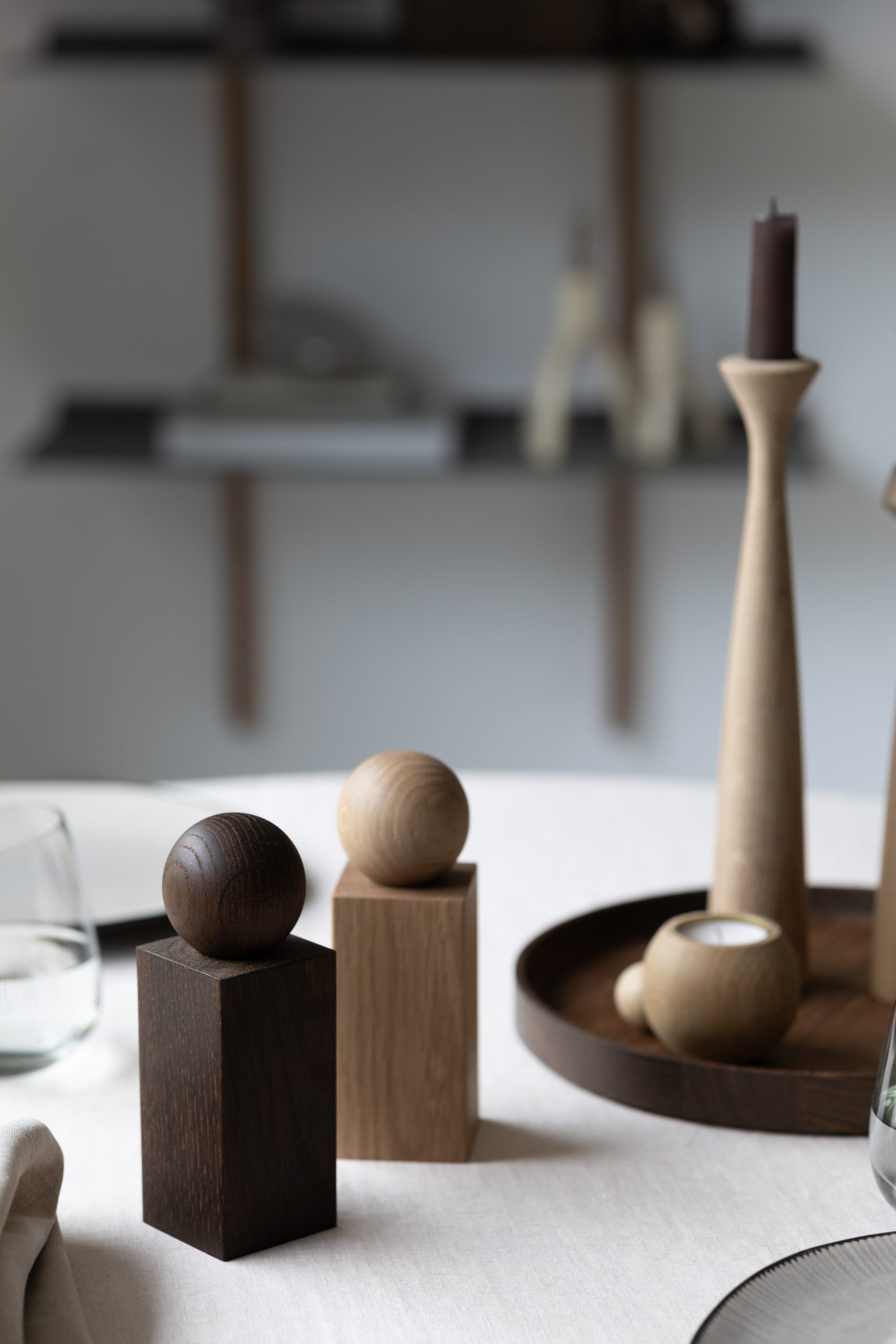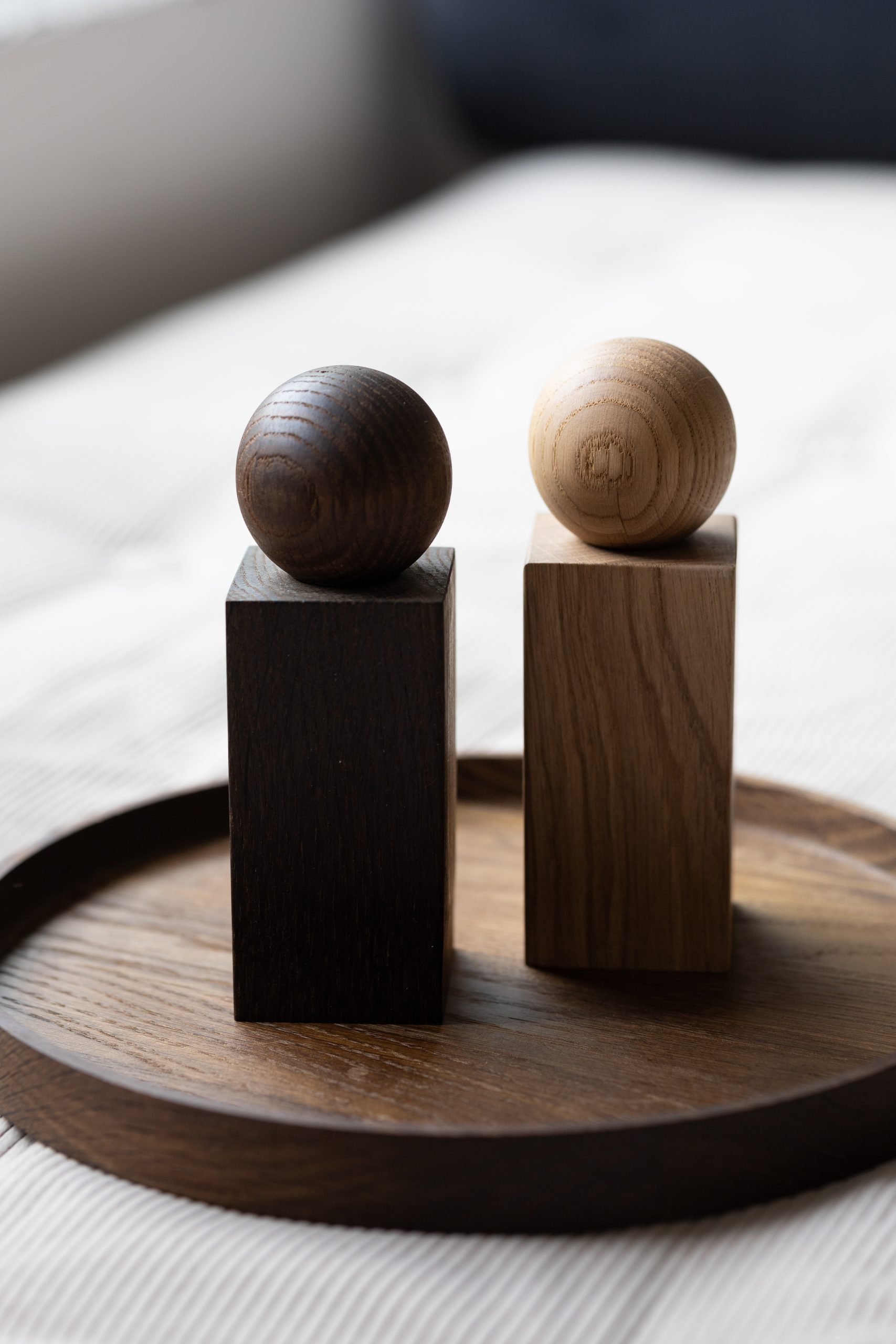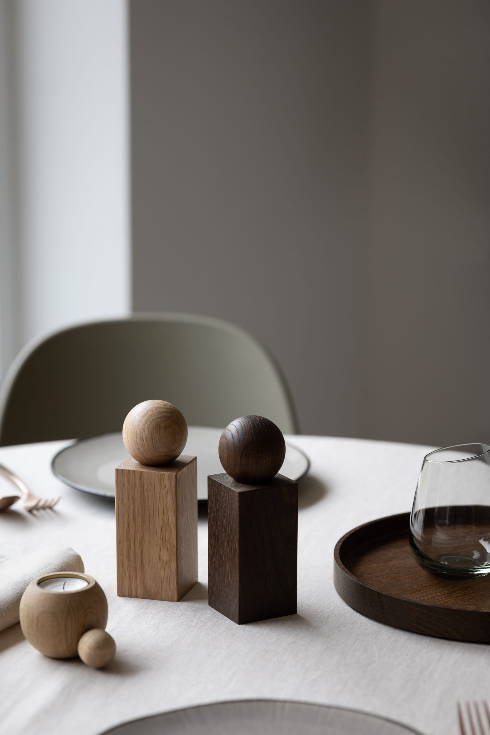 TWIST in smoked oak brings a sense of depth and richness to your kitchen or dining space. The dark, smoky tones of the FSC-certified wood are achieved through a gentle smoking process that enhances the natural character of the oak while lending it a distinctly modern mood. Its sculptural shape stands confidently on any table, offering both function and a quiet touch of luxury.