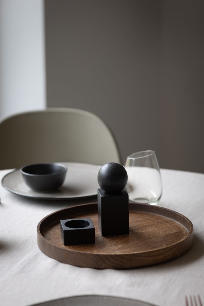 Bold and refined, the TWIST Salt & Pepper Set in black-stained oak is a striking addition to any kitchen or dining space. Its deep hue emphasizes the architectural form of the pieces, giving them a modern edge without sacrificing their tactile appeal.